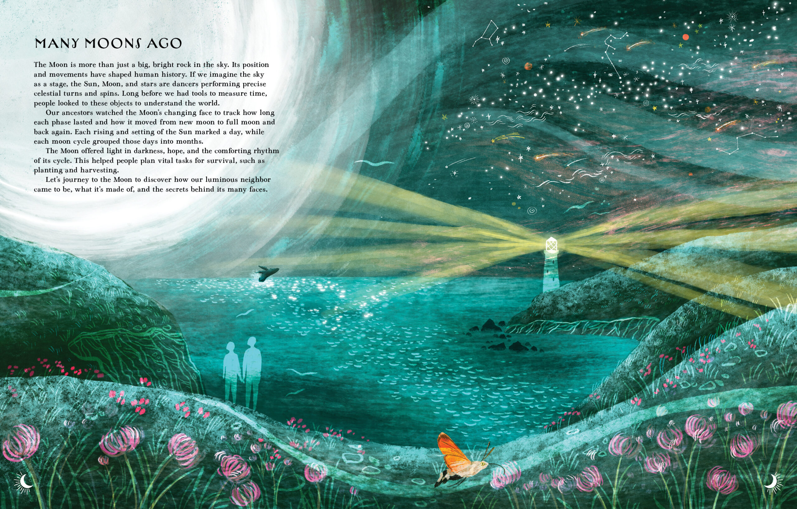 Stunningly illustrated and cleverly designed, the book reads from both directions: one half for the Sun, one half for the Moon.