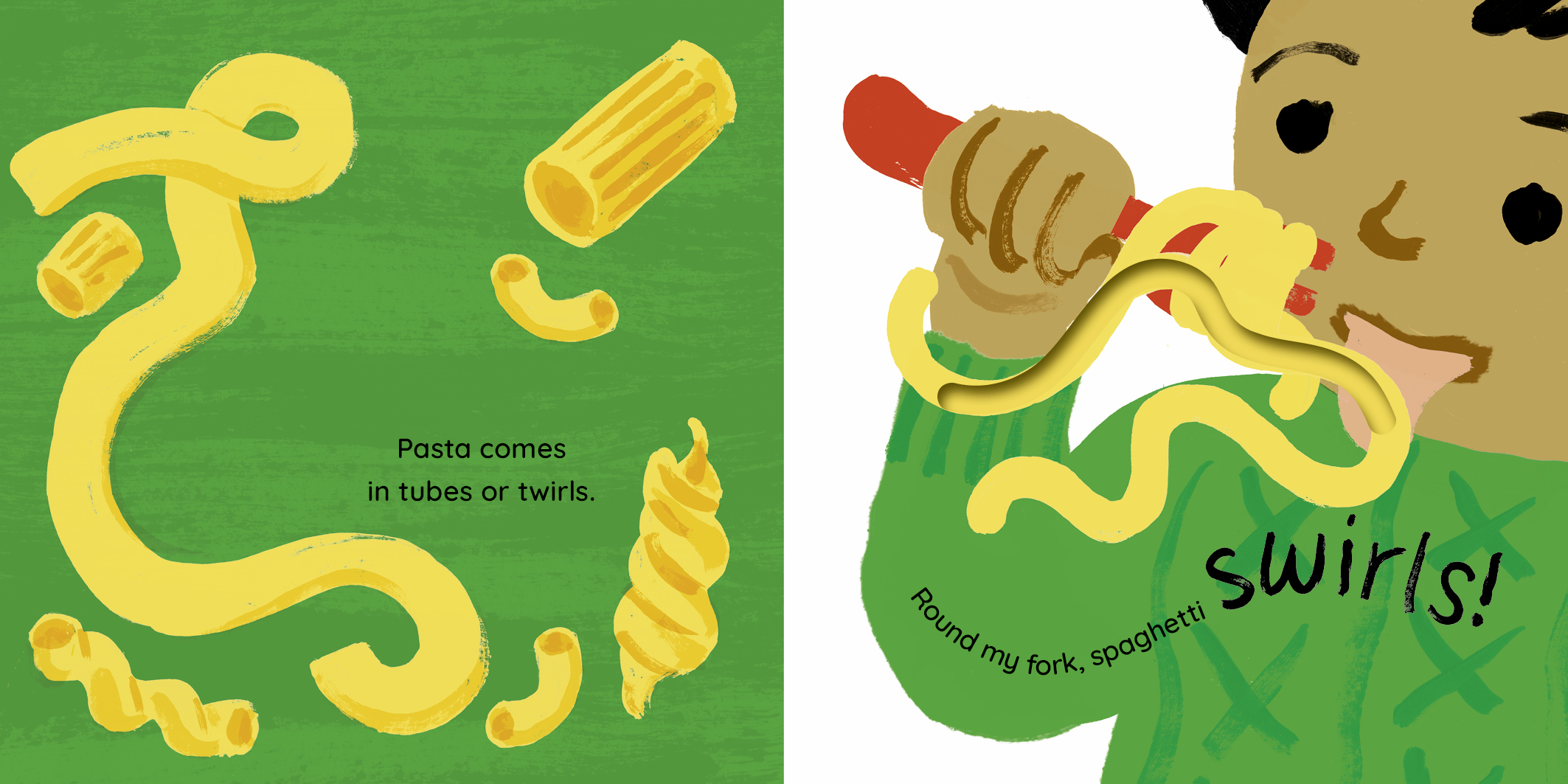 There’s only one thing this little baby loves to eat – pasta, pasta, pasta! Twisty spirals, bouncy bows, or long, slurpy strands – every shape is delicious!