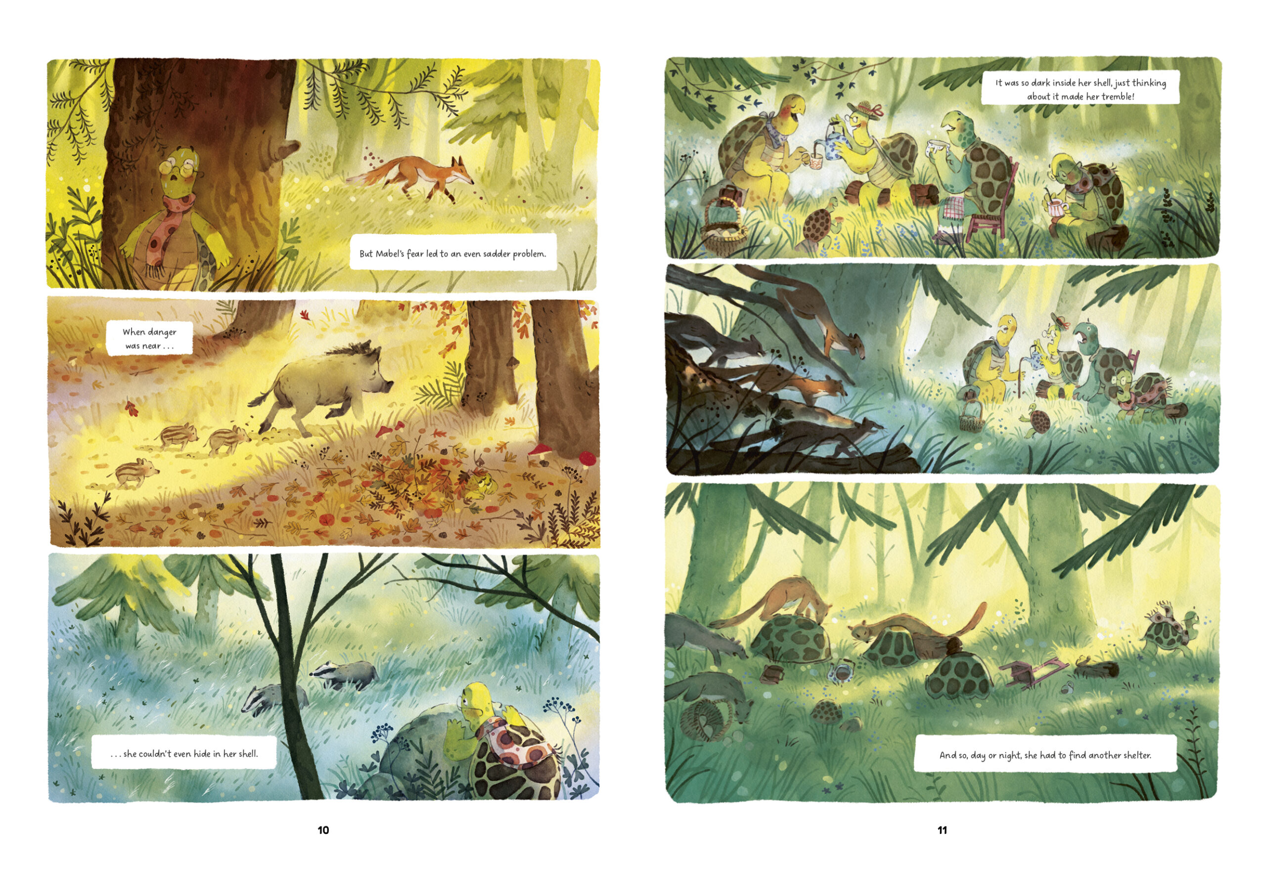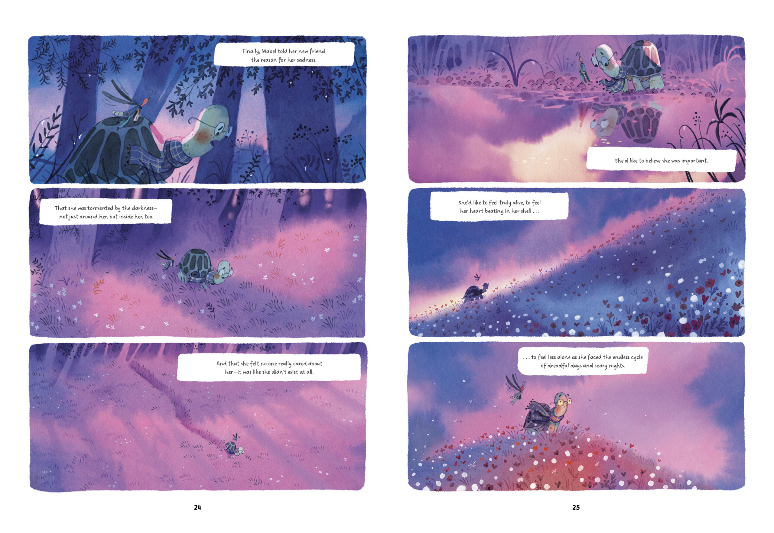 But when a kind-hearted firefly joins her for tea, he brings with him a spark of light. He teaches her to be brave in the night, to embrace the darkness and safety of her shell, and to no longer be ashamed of her fears.
